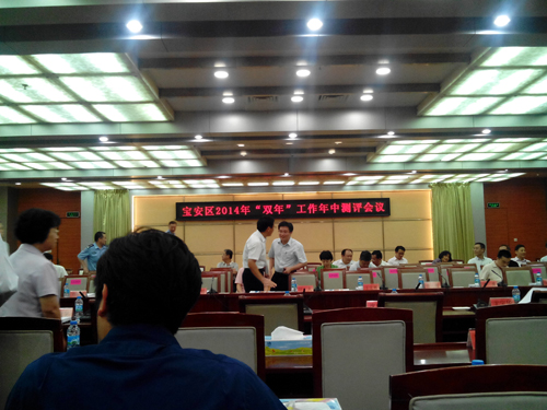 8月5日,寶安區(qū)2014年“雙年”工作年中測評會議召開,區(qū)委書記田夫主持會議,區(qū)各部門領(lǐng)導(dǎo)出席會議。154名“考官”對陣71個(gè)“考生”,現(xiàn)場問政